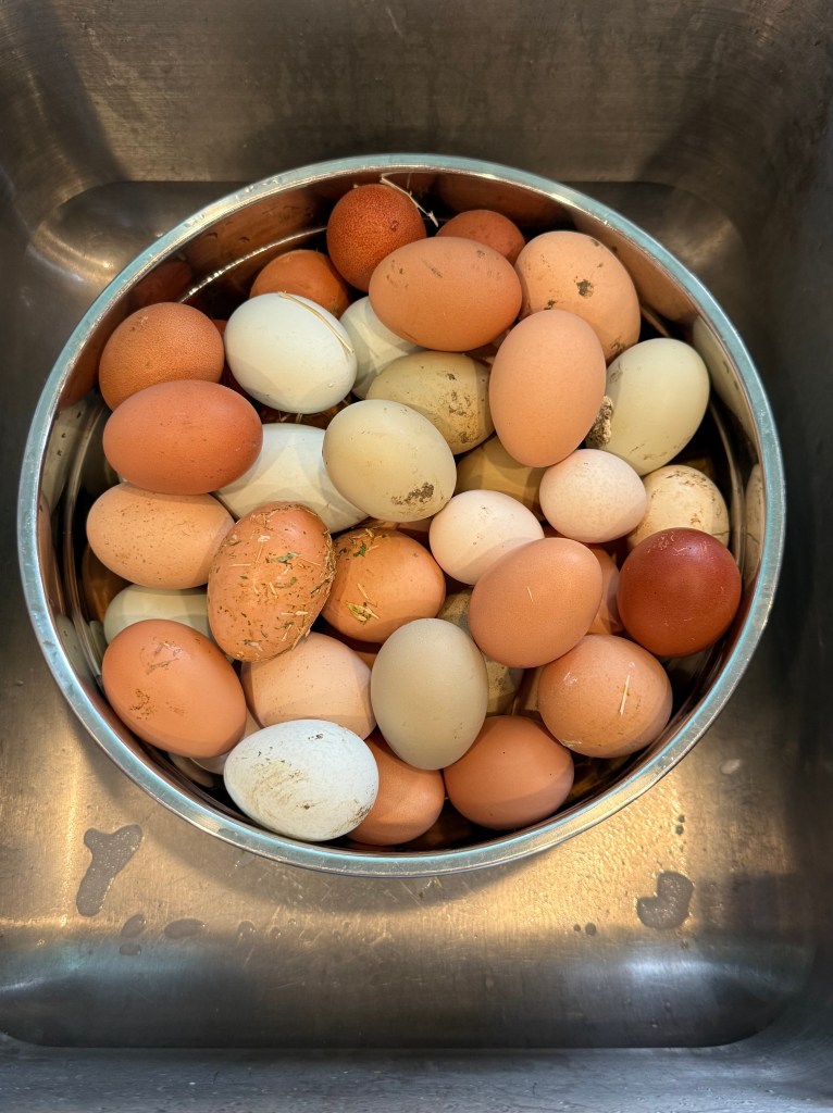 If you’re storing eggs long-term or selling them, keeping the bloom intact is important. A dry cloth or gentle brush is often all you need for lightly soiled shells.