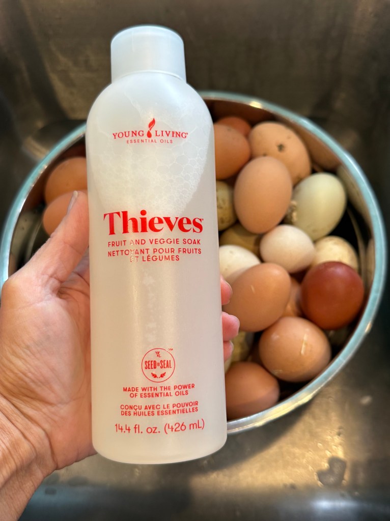But when I’m prepping eggs before using them, especially if they need more than a dry wipe, I like using a tiny splash of this plant-based wash to help lift visible dirt.