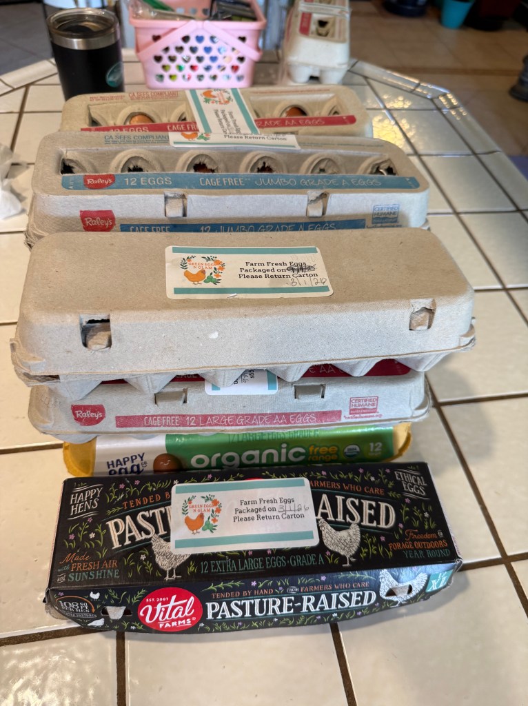 When I share or sell eggs, I use recycled cartons and add a simple label that says something like: